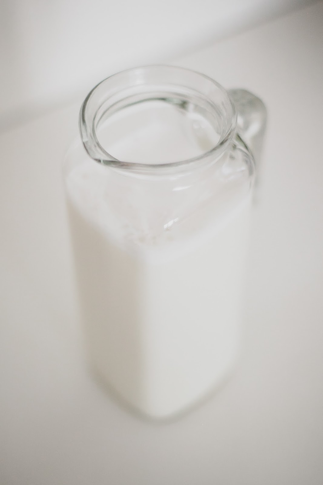 Add the maple syrup, vanilla, and salt to the bowl and mix, then transfer milk into pitcher of choice.